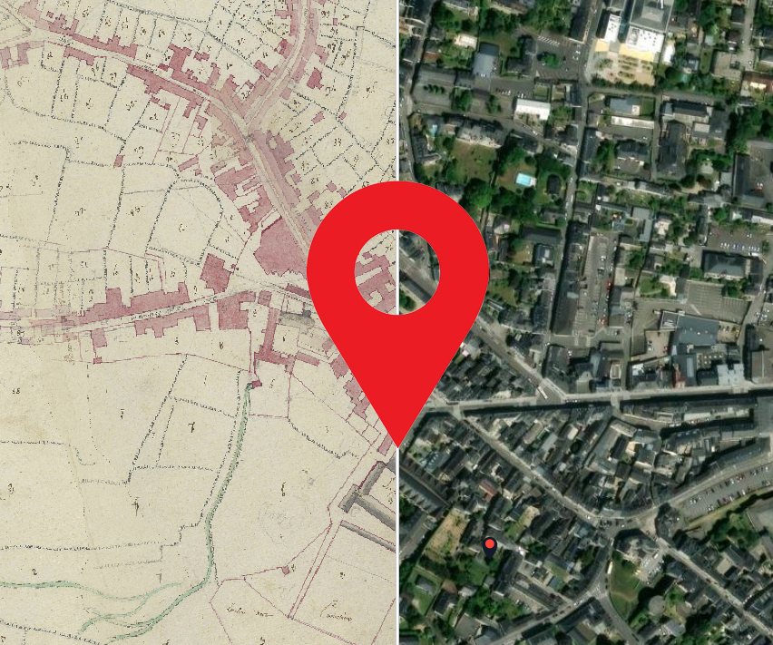 Le plan de Laval datant de 1754 a fait l'objet d'une géolocalisation et son intégration dans un système d'information géographique (SIG) permet de le comparer par superposition avec des représentations de la ville à d'autres époques. Ainsi trois couches supplémentaires sont proposées : le cadastre ancien de 1840, le cadastre actuel et la vue aérienne récente.