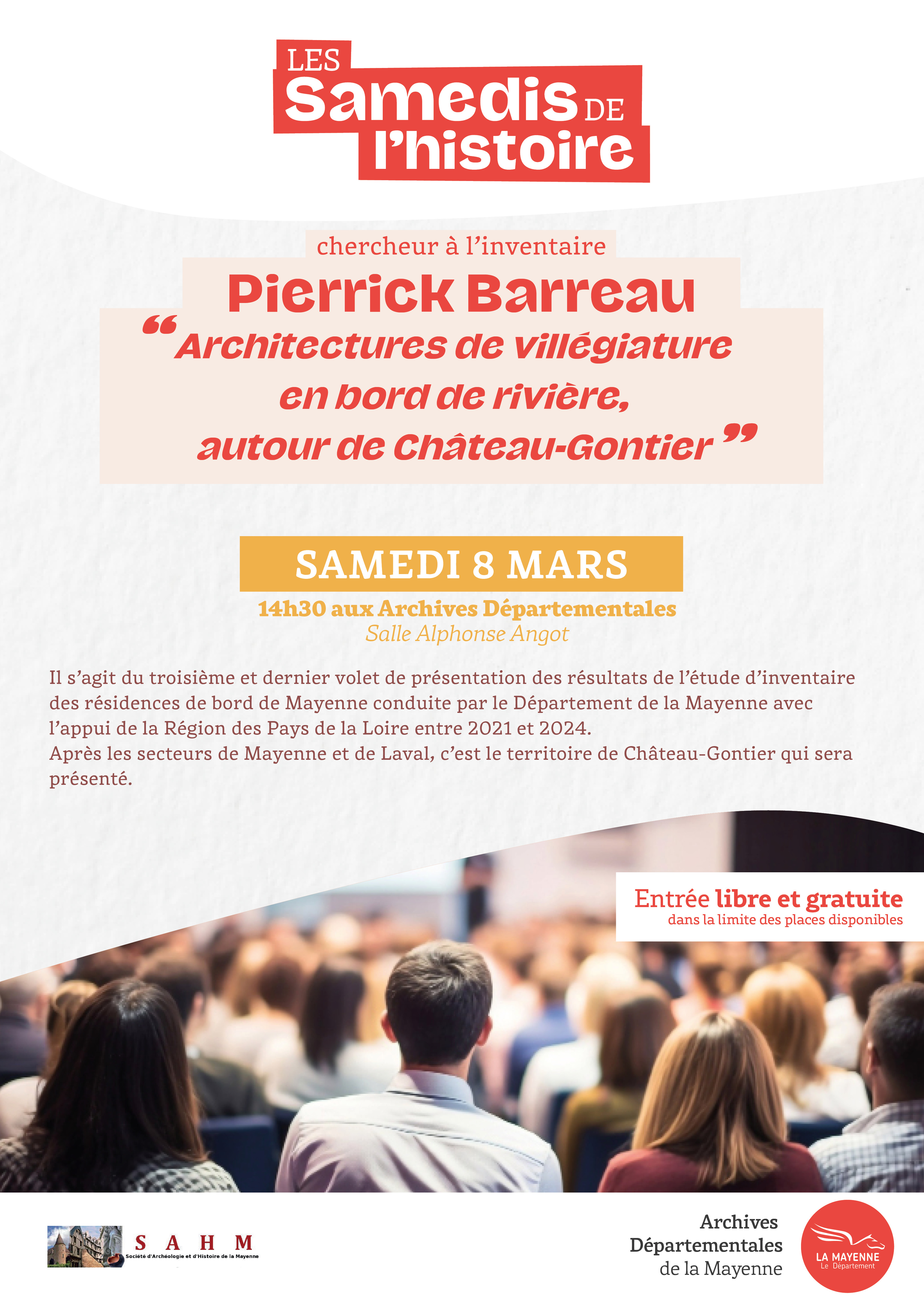Samedi 8 mars 2025 à 14 h 30 aux Archives départementales, salle Alphonse Angot.