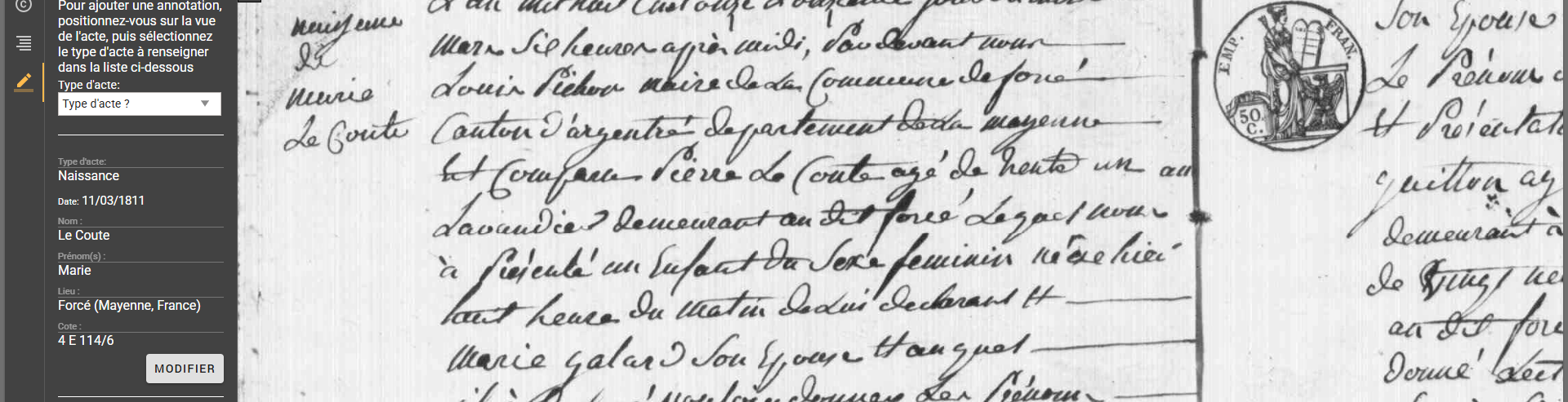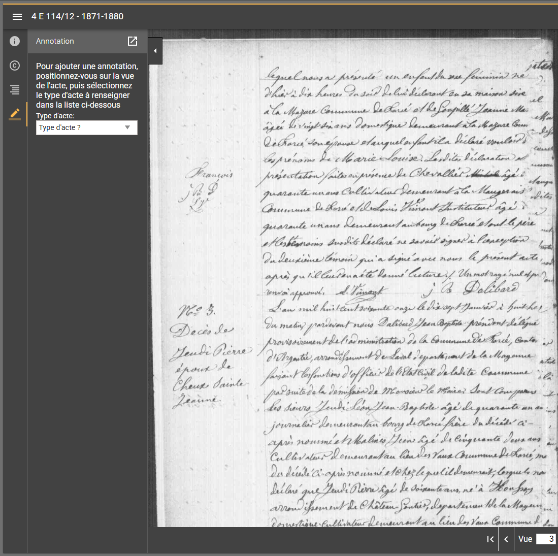 Nous constatons un usage erroné du formulaire de saisie des annotations. En effet, le formulaire affiché à gauche de la visionneuse lors de la consultation des registres d'actes est un formulaire de saisie directe des noms et prénoms afin de compléter la base d'annotations. Ce n'est pas un formulaire de recherche.